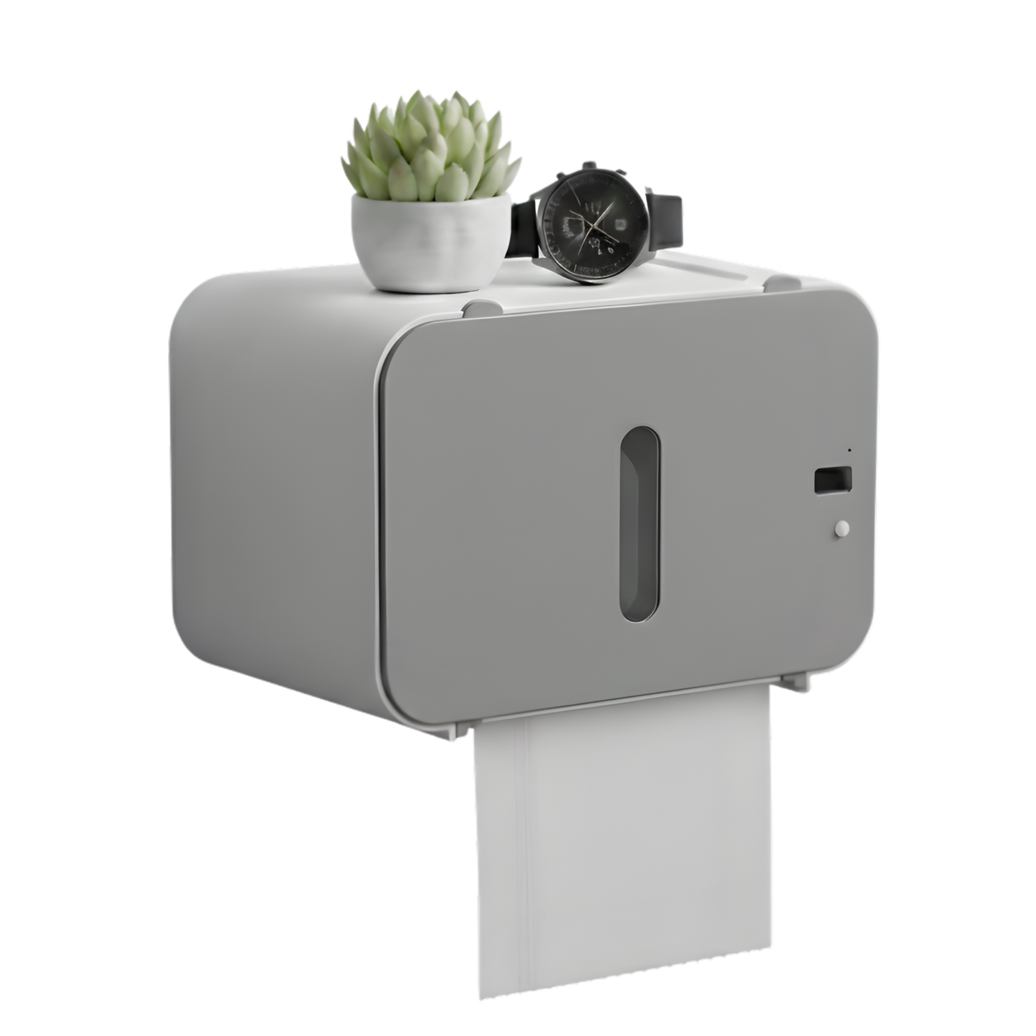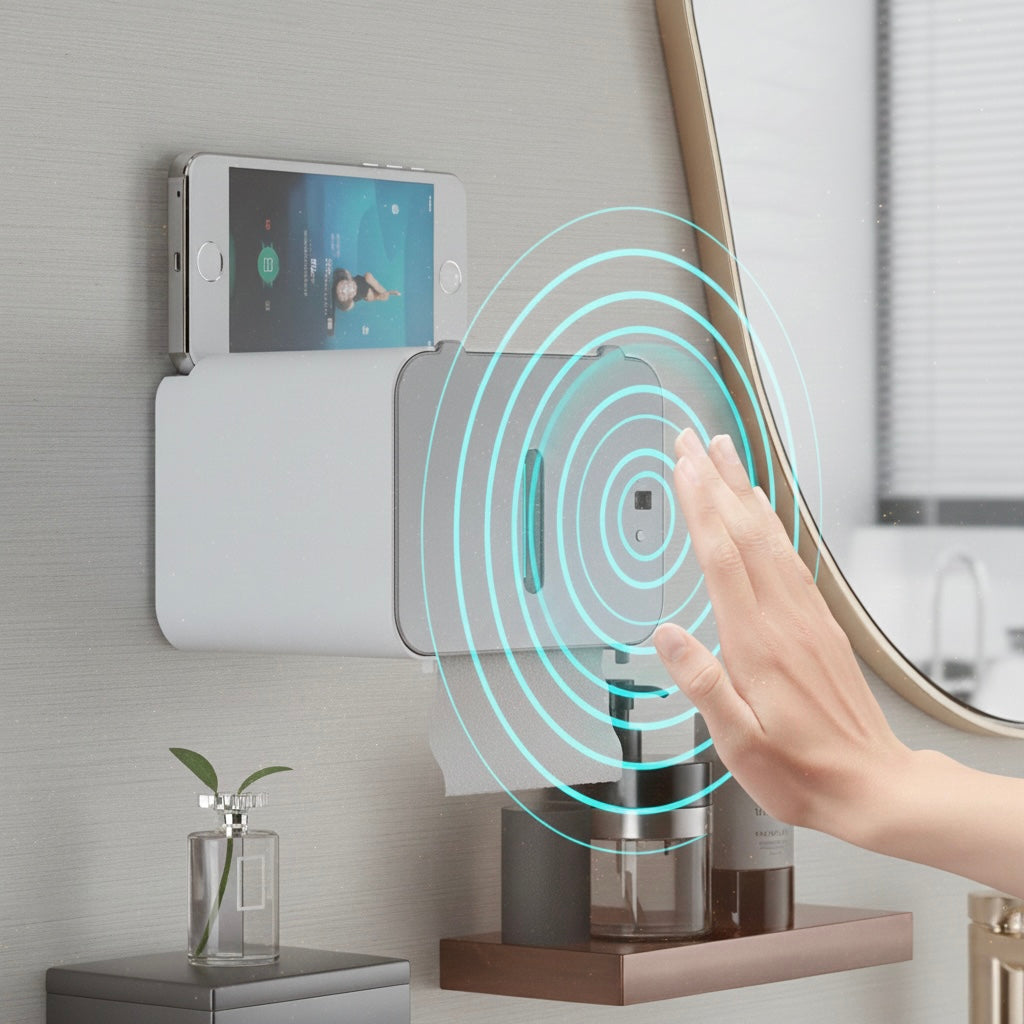 Este soporte de papel higiénico con sensor de inducción ofrece una forma moderna, higiénica y automática de dispensar papel sin necesidad de tocar el dispositivo. Su diseño montado en la pared ahorra espacio en el baño y mantiene el papel protegido contra humedad y salpicaduras.