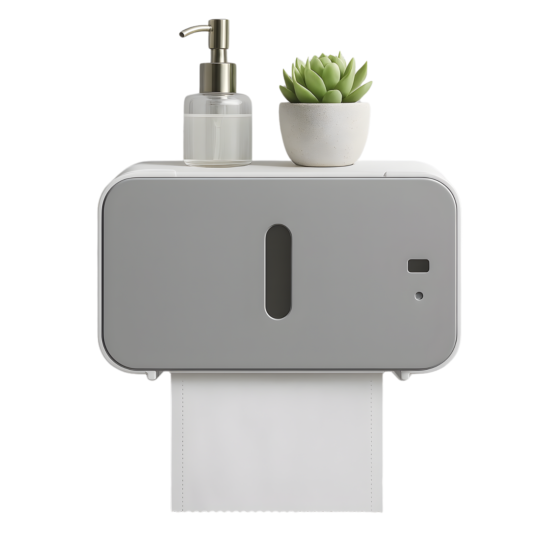 Solución 4 en 1: No es solo un dispensador. Es una solución 4 en 1: Soporte para Móvil, Almacenamiento Superior, Corte de Papel y Sensor Automático.